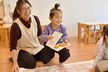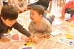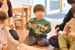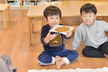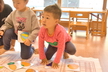 お正月遊びをしました!お部屋ではカルタをしました。最初から「ケーキが欲しい!」「パイナップル取る!」と意気込んでいるお友だちもいてやる気満々!保育士が読む言葉をよーく聞いて勢いよくダイブしたり、お友だちが取った後に慌てて取りに行ったりと白熱した高月齢児グループ。カメラマンが写真を撮るのに苦戦をするほどでした。一方低月齢児グループはほとんどのお友だちがきょとんとしていて、欲しいカードを取って自分の前に並べる姿もありほのぼのしていました。そして廊下では3種類のコマに挑戦。回し方を保育士に聞きながら一緒に楽しんでいます。手先が器用なお友だちはひも付きのコマを一人で回せるようになってきましたよ。今後寒さが厳しくなってくるので、引き続き室内でお正月遊びも楽しんでいこうと思います。