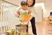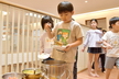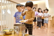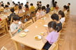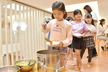 今日はひまわりさんの大好きなカレーライス!朝から給食の時間を楽しみにしていた子ども達は園内に漂うカレーのにおいに『いいにおい!』と大興奮でした!待ちに待った給食の時間…最近、小学校に向けておかわりをする時に自分たちでよそっているので、今日は自分たちでカレーをよそっていきました♪『いっぱいいれていい!?』と目をキラキラさせていたひまわりさんはお皿いっぱいにカレーを入れると席に着き『いただきまーす!!』と嬉しそうに食べ始めていました。おかわりも2回、3回は当たり前…もりもり食べてお腹がぱんぱんになっていたひまわりさんでした♪