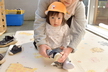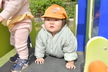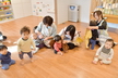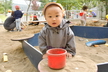 朝晩の気温もぐっと下がり、一気に秋が深まってきました。春とは大きく姿が変わった園庭遊びの様子を久しぶりにお伝えします。園庭では日中は陽が当たると暖かい日も多いのですが、肌寒い日は上着などで調節しています。上着、カラー帽子、靴下を部屋で身に着けてから出発です!担任の『園庭に行くよ』の言葉で何をするか分かっている子も多く、座って自分の順番を待つお子さんもいますよ。準備ができたらベビーカーや歩いて園庭へ向かいます。歩ける子はまずテラスで靴を履いていきます。最近では靴箱から自分の靴を持って履こうと挑戦する姿もみられはじめています。帽子、靴下、靴は少しずつ自分で身に着けることができるように保育者が一緒に練習しながら援助していますので、ぜひご家庭でも子どもたちのチャレンジの機会をつくってみてくださいね。暑い時期は園庭に出ることが出来ませんでしたが、小ホール遊びでも活発に動いて体力をつけていたたんぽぽさん!広い園庭を自由に探索しています。園庭をハイハイや歩いている中で、落ち葉を見つけたり、フラフープやボールを見つけて手に取ってみたりと興味のあるものになんでも手を伸ばしていますよ。年上の子の遊びをじっと見つめる姿もあり、観察して真似してみるなどお部屋とは違った楽しみがあるようです。すべり台も日に日に上達してきて、何度も滑って順番待ちの列になるほど大人気です♪そして大好きな砂場遊びでは集中して長い時間遊んでいる子が多くいます。保育者が型抜きをしてみせるとなんとなく同じような動きをしたり、おもちゃのカップのにシャベルで砂を入れてままごとのようにして楽しんでいます。砂の感触を触って楽しんでいる内に顔まで砂だらけになってしまう…!?なんてたんぽぽさんらしい可愛い姿もありました。今年の秋は短いようなのでこれからあっという間に寒くなりそうですが、元気いっぱい外遊びを楽しんでいけたらと思います!