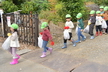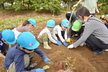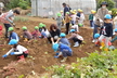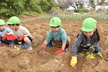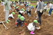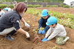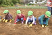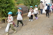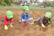 今日は畑に芋掘りをしに出掛けました!「たくさんほるぞー!」と気合十分で畑に向かったゆりさんとひまわりさん…。軍手をはめ、自分の手で土を掘り進め、姿を現したさつまいもに「いたー!!」と大興奮!「みて!おおきい!」「ほそいのもある!」「たくさんつながってるよ!」などなど嬉しそうに報告してくれる姿がありました♪1人で掘るのが大変そうなお友達を見つけると「てつだうよ!」と助けてくれる優しい姿もありましたよ!袋いっぱいに収穫できたさつまいもを「おもい!」と言いながらも大切そうに園まで頑張って持ち帰ったゆりさんとひまわりさんでした!『はやくたべたーい!』とやきいも大会が待ちきれない子ども達でした♪