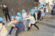 今日は消防署へ行きました!向かう途中で出動していく消防車を発見し、「火事かな!?」「え!!行っちゃったってことは消防車いない!?」と話す姿もありました。消防署では消防車の説明を聞いたり建物の中を探検させてもらいました!「これはなに!?」「ここはなに!?」と質問が止まらない子ども達に消防士さんたちも一生懸命に答えてくれていましたよ(笑)。消防士は体を鍛えないとなれないという話から、消防士さんがどれくらい力があるのかを確かめるために、ひまわりさん24人vs消防士さん3人でつなひき対決をしました!結果はなんとひまわりさんの勝ち!消防士さんから『もう一回!』の声があり次は消防士さん4人と戦うことに…結果は消防士さんの圧勝でした(笑)。その後も消防車に乗ったり、一緒に筋トレをしたりしてたくさん楽しんだひまわりさんでした♪