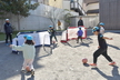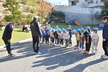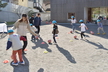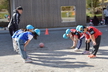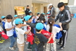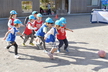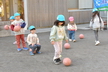 今日はみんなが楽しみにしていたサッカー教室がありました。日本サッカー協会から来て下さったコーチ2名と町田ゼルビアから来て下さったコーチの方と元気いっぱいボールに触れながら楽しんでいきました。「サッカーはやったことないよ。」「うまくできないと思う。」と最初はドキドキしていて、不安そうな声も聞こえてきたのですが、いろんな走り方をして楽しんだり、ボールに触れていく中でそんな不安もすぐに消えていった様子のひまわりさん。ドリブルをしながらゴールにシュートを決める経験もたくさんしていき、「やったー!」と嬉しそうな声がたくさん聞こえてきました。最後は≪赤チーム 対 青チーム≫で対戦もしていき、真剣な表情でボールを追いかけるみんなの顔が、とても印象的でした。がんばったみんなにはコーチから「グリーンカード」のプレゼントがあり大喜び!イエローカードとレッドカードはみんなも聞いたことがあったかもしれませんが、「グリーンカード」はいいことをした時にもらえるそうです。勝っても負けても最後は握手をして、最後まで一生懸命がんばったひまわりさんでした!