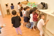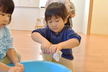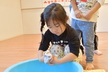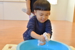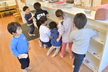 正月事始めを迎えたのでばら組でも大掃除をしました!大掃除を始めるためにまずはロッカーやおもちゃ棚、本棚などを空っぽにするところからスタート。棚の中の物がなくなって「もうキレイになったね!」と話しているばらさんに思わず「これからこれから!」とつっこみを入れてしまいました。そんなかわいい勘違いもありましたが、雑巾を持ってからが大掃除の本番。みんなで雑巾の絞り方を確認してから順番にタライで雑巾を濡らしていきます。「半分に折って海苔巻きにして…」と雑巾の持ち方を確認したり雑巾を絞るときに力が入って思わず「ん~!」と声に出てしまっていたりという姿がありましたよ。棚の中やお部屋の壁や床だけでは物足りず、ばらさんの大掃除はランチルームとホールへ。ランチルームで毎日使っている椅子を拭いて、ホールでは階段や床を拭いて…「大掃除ってたいへーん!」と話ながらも楽しんでいたばらさんでした。